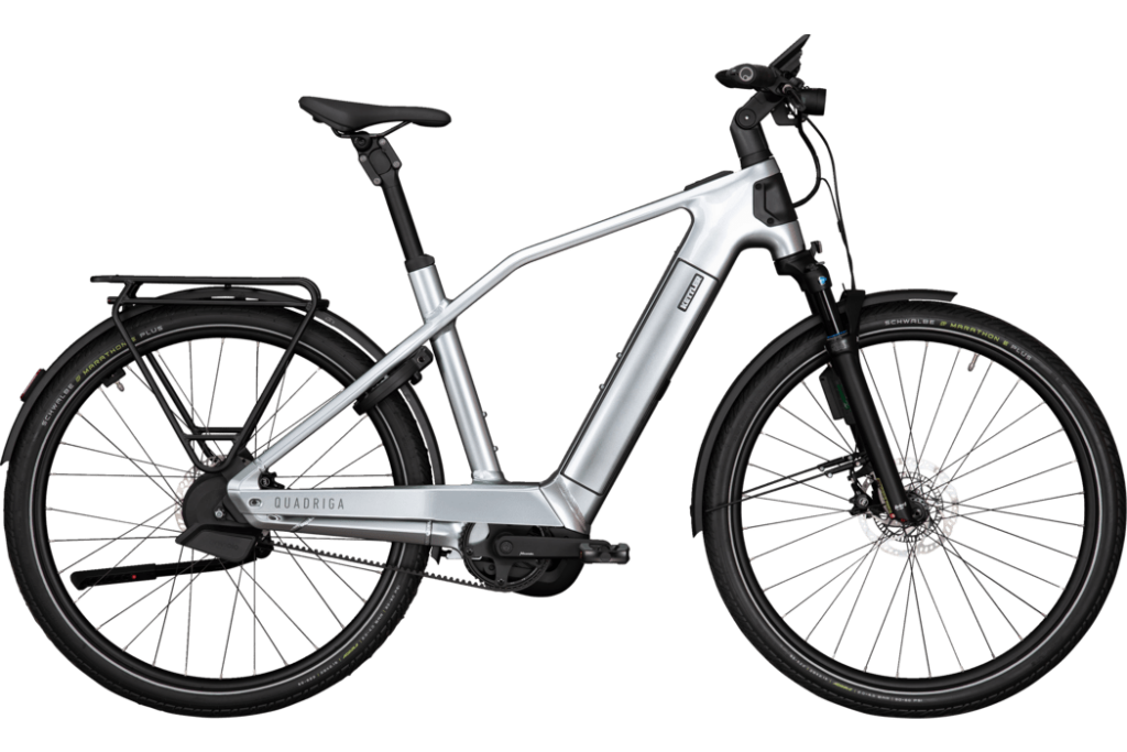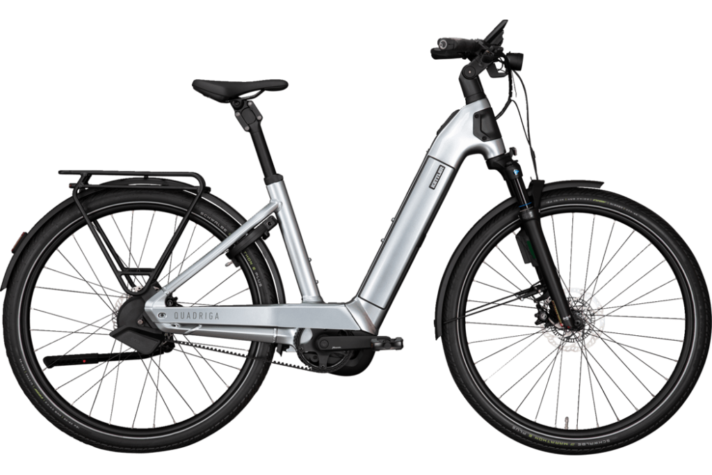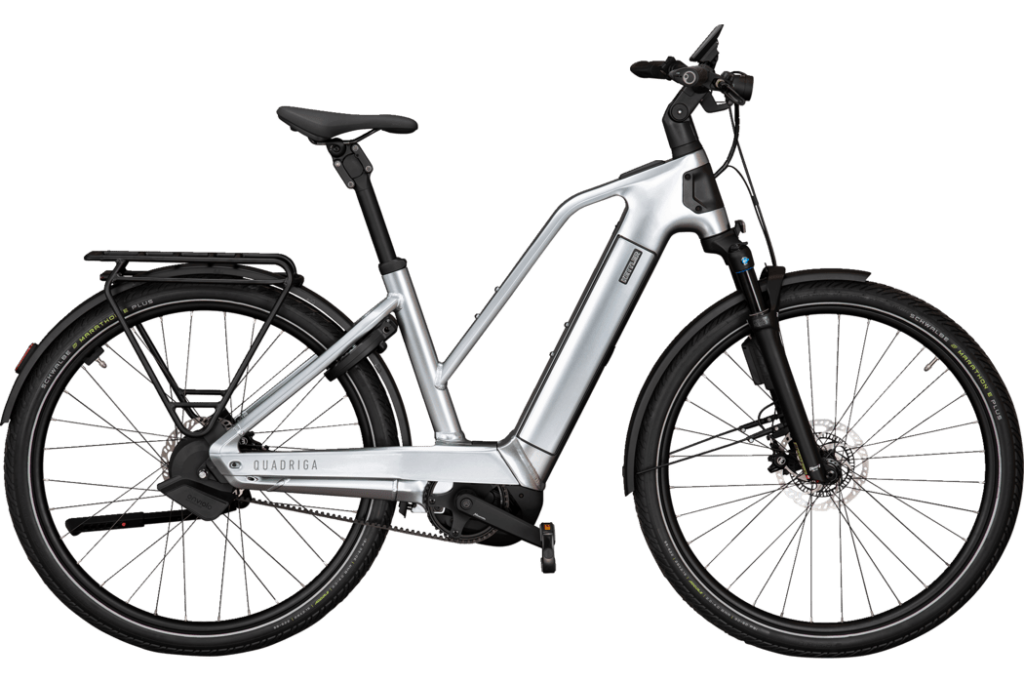 Le vélo électrique allie parfaitement technologie moderne, équipement réfléchi et design élégant. Grâce à la transmission automatique Enviolo, le vélo gère le changement de vitesse de manière fluide – totalement sans à-coups, douce et intelligente. Il s’adapte automatiquement au style de conduite individuel et à la cadence de pédalage. L’assistance puissante est assurée par le moteur Bosch Performance Line CX, qui délivre une puissance fiable avec un couple de 85 Nm, même dans les montées difficiles. En combinaison avec la généreuse batterie de 800 Wh, de longues distances sont possibles – idéal pour les longues sorties ou plusieurs jours de trajet sans recharge. Un point fort visuel et fonctionnel est le logo avant intégré et éclairé, qui ne sert pas seulement d’élément de style, mais augmente également la visibilité dans la circulation. Pour plus de sécurité, le système ABS intégré empêche le blocage de la roue avant lors d’un freinage brusque – un grand avantage, surtout par temps humide ou sur sol glissant. Une autre fonction de sécurité est le feu-stop intégré, qui s’allume à chaque décélération pour avertir précocement les usagers de la route derrière vous. Pour une conduite détendue et stable sur des routes irrégulières, la fourche suspendue SR Suntour avec 80 mm de débattement absorbe efficacement les chocs et augmente nettement le confort de conduite. Ce vélo électrique convainc également par sa praticité au quotidien : le robuste porte-bagages MonkeyLoad supporte jusqu’à 27 kg et permet une fixation facile et sécurisée des sacs, paniers ou sièges enfants. Une serrure de cadre intégrée offre une protection rapide contre le vol directement sur le vélo – idéal pour les arrêts courts au quotidien. Pour un confort de conduite maximal et une sécurité anti-crevaison, le vélo est équipé des pneus Schwalbe Marathon E-Plus éprouvés. Ces pneus ont été spécialement conçus pour les charges plus élevées des vélos électriques et offrent une excellente adhérence, durabilité et une protection anti-crevaison exceptionnelle. L’équipement est complété par l’écran Bosch Kiox 500 – un écran moderne en couleur avec de nombreuses fonctions. Il offre une présentation claire de toutes les données de conduite, est intuitif à utiliser, prend en charge la navigation et peut être couplé à un smartphone – parfait pour ceux qui souhaitent rester connectés en déplacement.