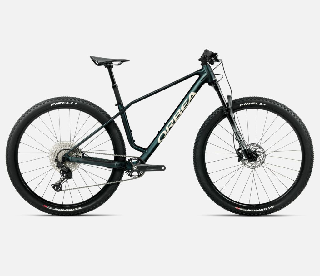 Fourche RockShox Judy 110 mm avec commande au guidon PopLoc, dérailleur arrière Shimano M8100 et shiftter M6100, freins à disque hydrauliques, pneus Pirelli Scorpion Sport 2.4